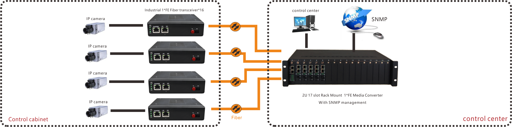 The device is based on the Ethernet switch chip + FPGA program with remote OAM frame management function support the Console/WEB/Independent SNMP  management but also with 2U card with SNMP network management 1 optical 1 transceiver card interconnected SNMP software can be managed to the device;