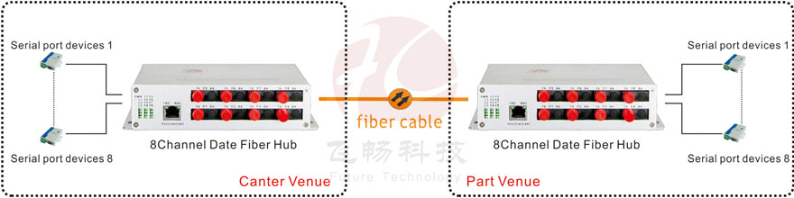 The fiber optic hub for star formation fiber network, RS-232/485/422 transparent transmission on fiber optic star network. Fully adaptive user agreement without changes. As a result of the fiber as a transmission medium, you can completely avoid the threat of harsh environments lightning, surges, electromagnetic interference and other communication devices while eliminating the investment surge lightning protection devices when the original use of copper, greatly improved data communication reliability, security and confidentiality.
