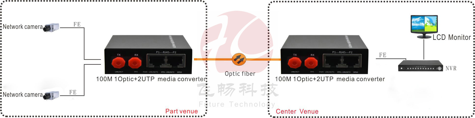 This series of products are IEEE802.3 Ethernet media converter, can realize 2*10/100Base-T twisted pair and 10/100Base-FX two medium conversion or extend the network transmission distance, is mainly used for optical fiber network transmission distance (20/40/60/80/120 km), fully support the 10/100M transmission rate.