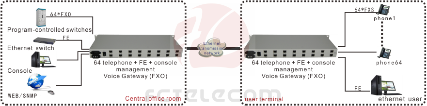 Voice port support FXO / FXS / two /four-wire EM / two-wire audio / magnet telephone interface FXO port and program-controlled switches docking FXS port and the user's telephone connected;