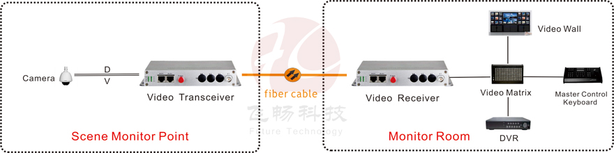 This digital video optical transceiver adopts digital video encoding and gigabit optical fiber transmission technology. The multi-channel single-direction bi-direction audio, video, data, telephone, Ethernet and switch real-time synchronization, no-distortion and high quality transmission is on the single-core or dual-core optical fiber. Complete digital video non-compression transmission technology, with video and data condition indicator, can monitor the system normal operation. It uses modular design, the user can flexibly select or customize configuration based on the scene occasion. Rack installation or desktop installation can be optional. This product is made up of optical transmitter and receiver. It can transmit 1 Channel forward direction Video and 1Channel reverse direction RS485 data.