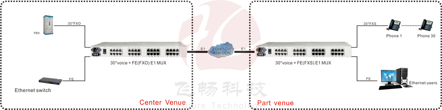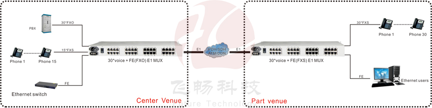 The E1 voice multiplexers provide an E1 access, 30-way telephone outputs, 1 RS232 / 422/485 or Ethernet optional. Equipment electrical part for the whole digital circuits, machine reliability, stability, low power consumption, high integration, small size, easy installation and maintenance. Many customers are telecommunications operators E1 leased lines used in computer networking, this equipment can be rented at the E1 line opened a few road phone, you can make free calls between headquarters and branch offices of this.