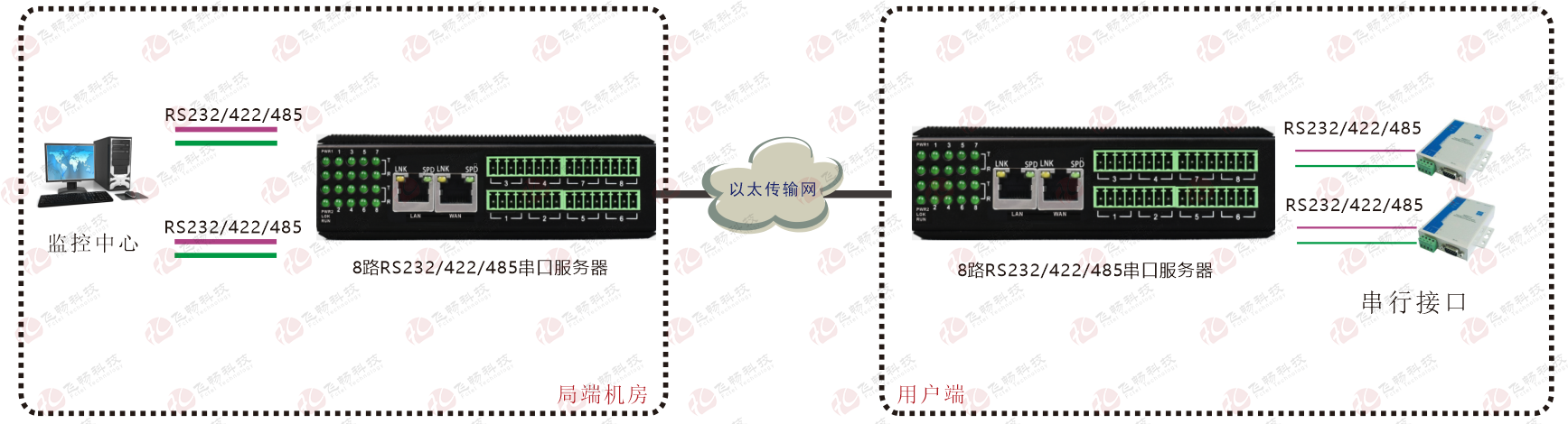 | 業(yè)務端口描述 | 8個RS232/422/485串行接口;2路百兆以太網電口 |