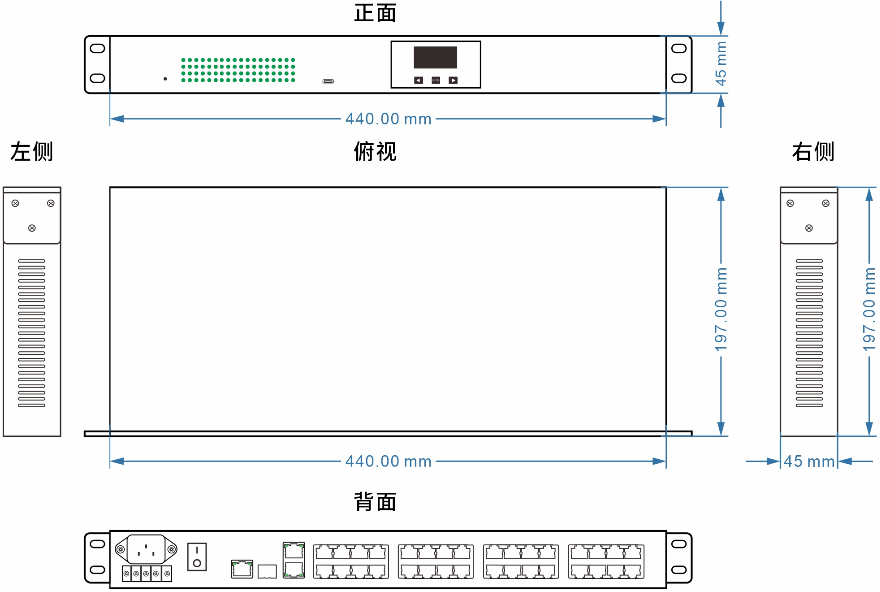 | 業(yè)務(wù)端口描述 | 32個RS232/422/485串行接口;2路千兆以太網(wǎng)電口,1路百/千兆以太網(wǎng)光口,一個Console接口,一個USB C口 |