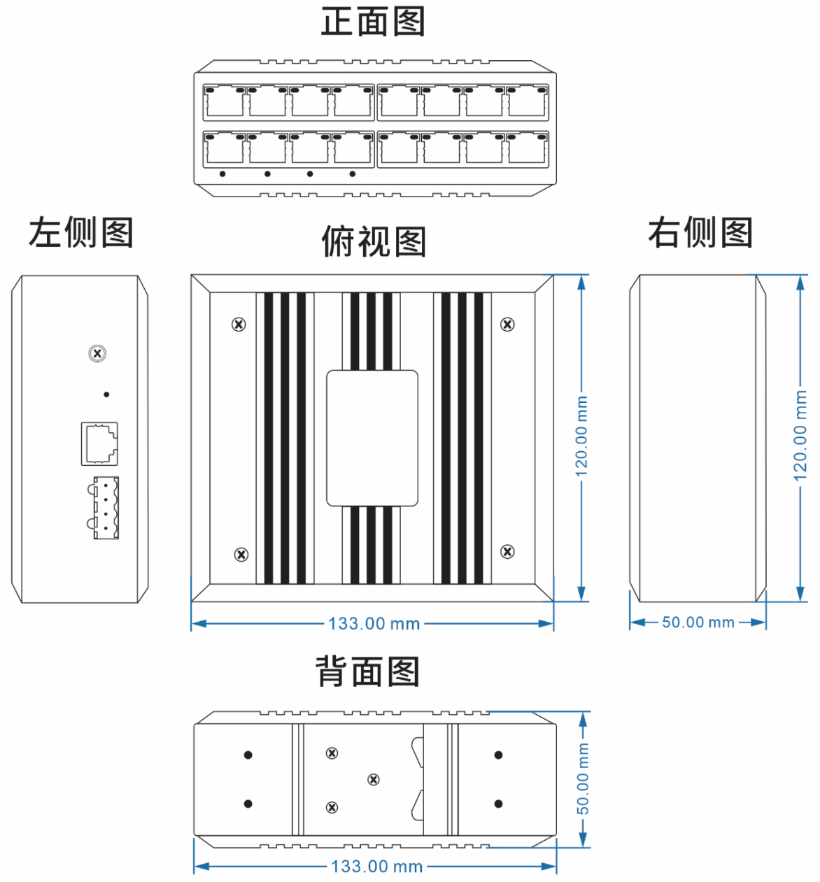 (110mm(長(zhǎng)) x 86mm(寬) x 50mm(高) 安裝方式:導(dǎo)軌安裝、壁掛式安裝 |