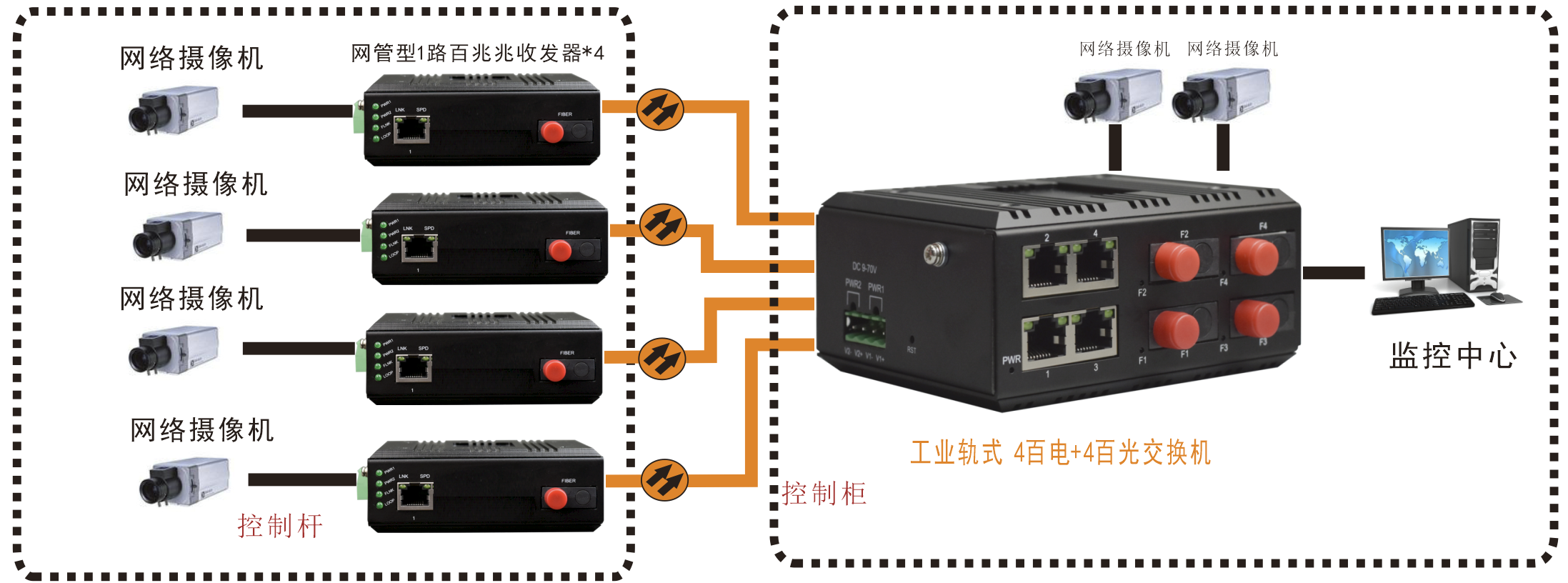 ◆ 提供4路百兆以太網(wǎng)電口,4個(gè)百兆以太光接口;