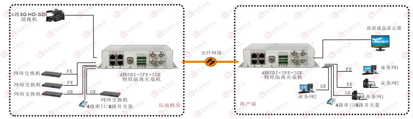 | 產(chǎn)品功能描述 | 在光纖上同時(shí)傳送4路3G HD-SDI視頻,1-8路開關(guān)量接口/1-4路RS232-422-485接口;2路千兆以太網(wǎng)(物理隔離),2路百兆以太網(wǎng)(物理隔離) |
